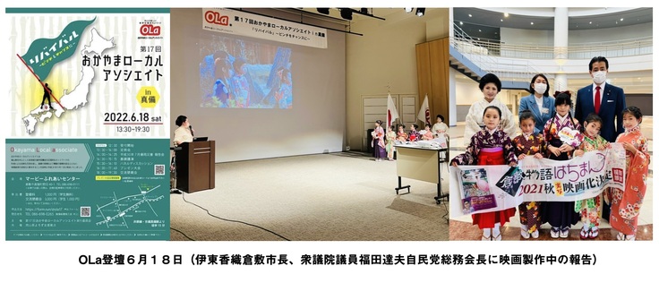 倉敷の誠子さんが作られている映画「倉敷物語はちまん」に出演させて頂きました。 地元の子ども達の演技が上手で横で見ているだけで、二人共もらい泣きしてしまいました。ボランティアでお手伝いされてるお母様方も本当のスタッフかと思うほどテキパキと動かれ感動の連続でした。 そんな倉敷の素晴らしい映画を東京でもぜひ上映して、私達の演技も併せて見てもらいたいので、ご支援よろしくお願いします。 東京で上映の時には、あいりもバーバラも舞台挨拶させてもらいます。